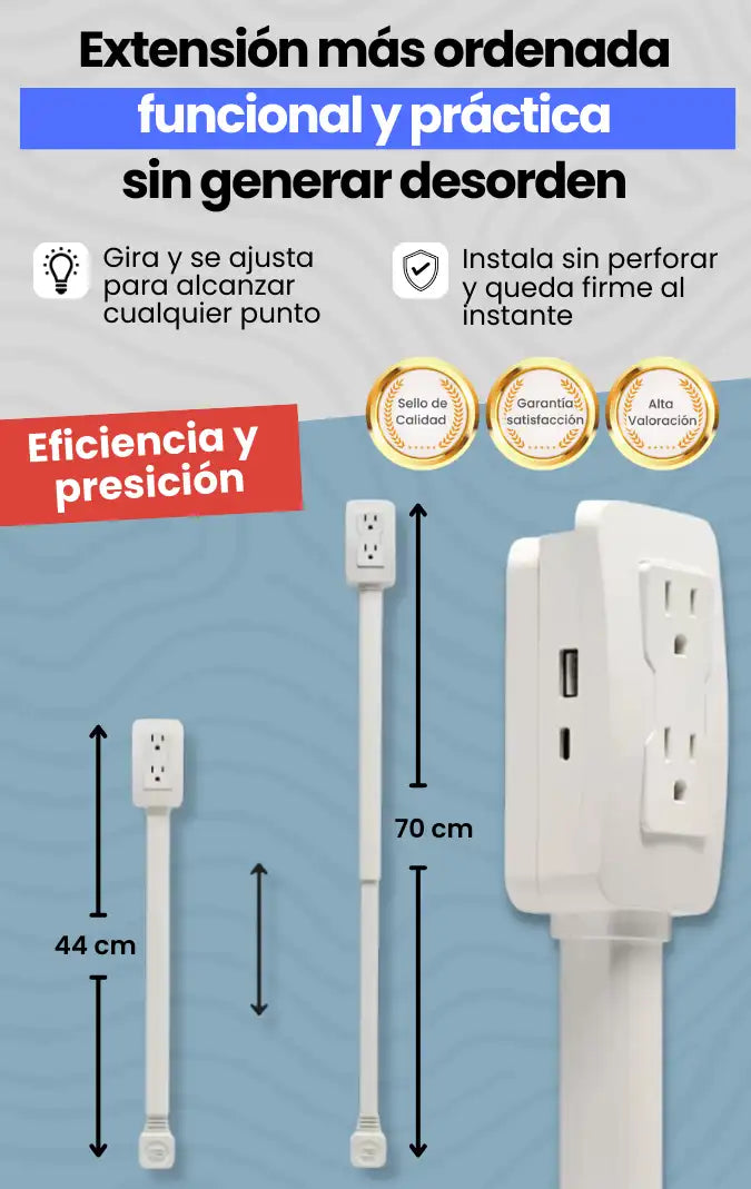 Sí, su giro de 180° y su extensión de 44 a 70 cm permiten acercar la toma sin mover camas, mesas o muebles grandes.