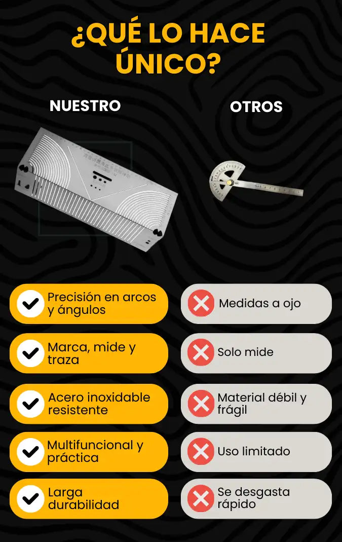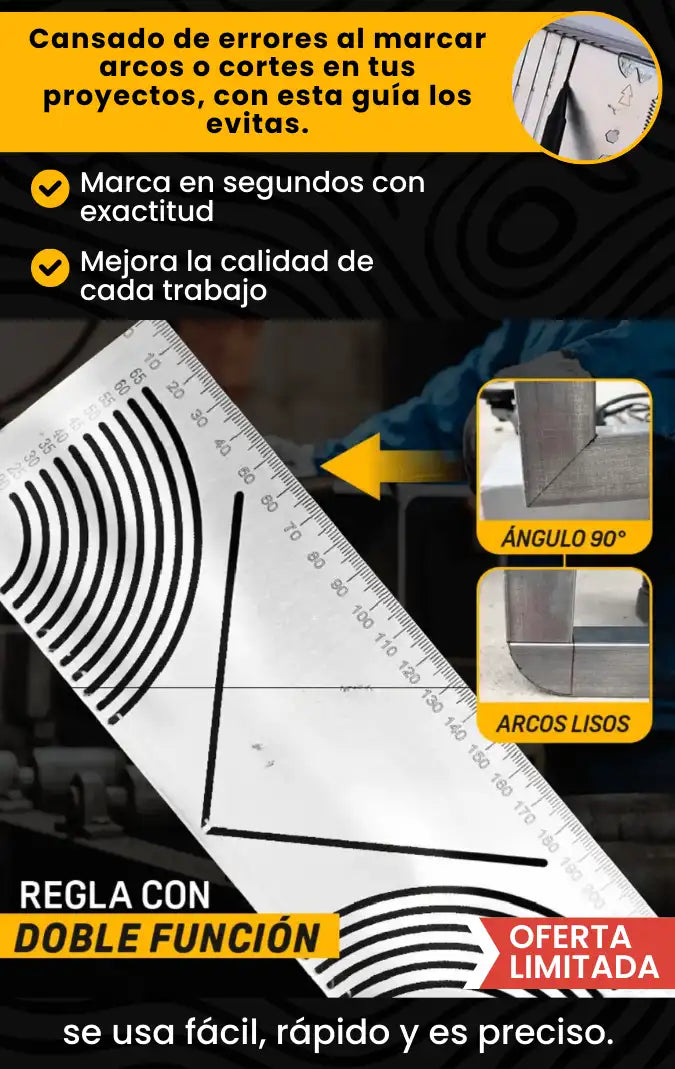 Funciona perfectamente en madera, metal y otros materiales que requieran cortes y pliegues exactos.